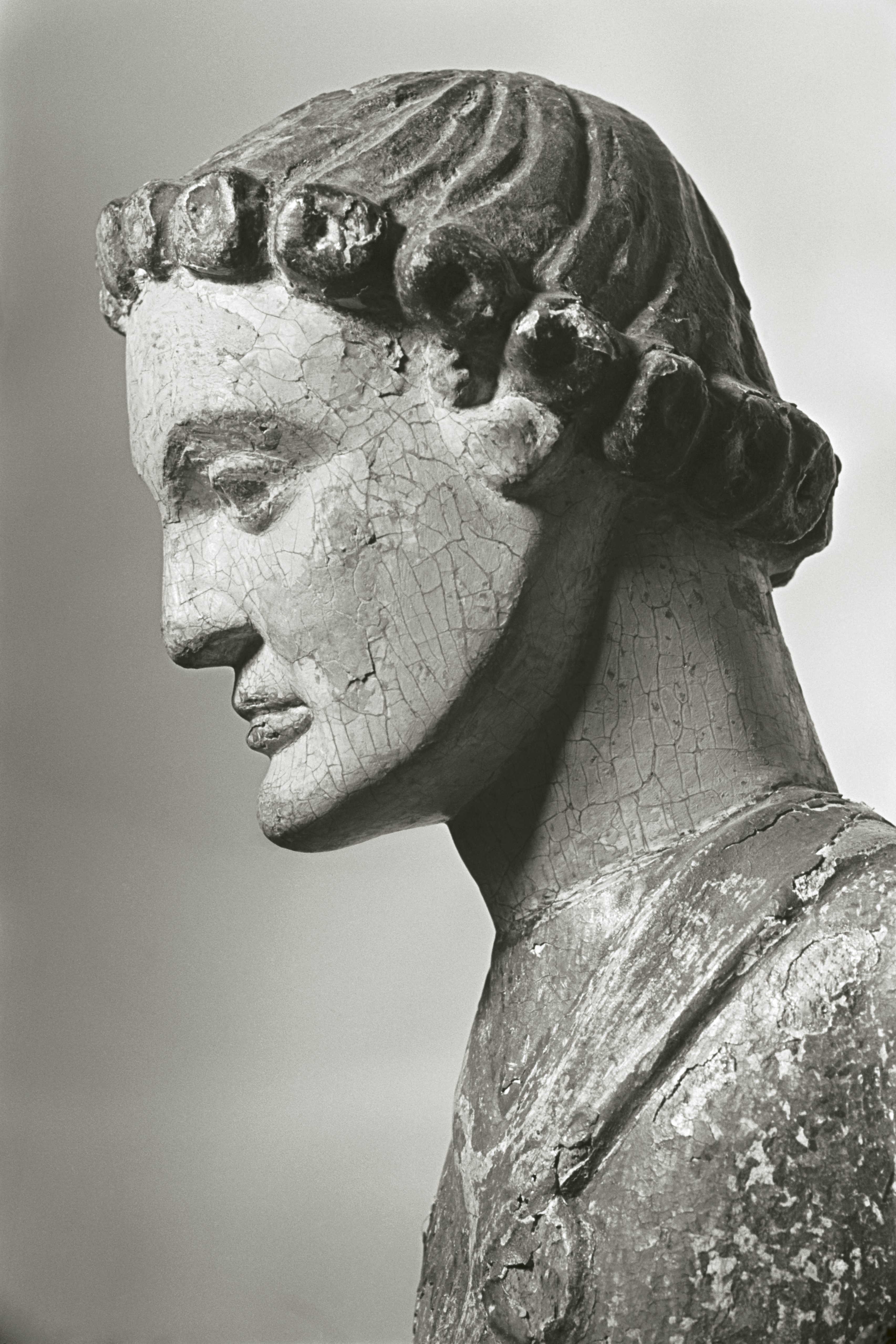 Mit klassischen Aufnahmen für den Museumsgebrauch haben die erhaltenen Abzüge nicht viel gemein. Gemessen am frühen Leitfaden des Kunsthistorikers Heinrich Wölfflin (»Wie Skulpturen fotografiert werden sollen«) machte Tritschler beinahe alles falsch, was man falsch machen kann. Er trennte Köpfe vom Rumpf, verschattete die Gesichter und scherte sich nicht um Frontalansichten – die Mehrzahl seiner Porträts zeigt die Heiligen tänzelnd im Halbprofil. Allzu gewagt war sein Blickwinkel gleichwohl nicht. Schon in den 1920er-Jahren hatte Richard Hamann das Publikum mit den »Deutschen Köpfen des Mittelalters« bekanntgemacht und Walter Hege die Figuren im Naumburger Dom vermenschlicht; bei der damaligen Popularisierung der alten Kunst spielte die Fotografie eine kaum zu überschätzende Rolle.