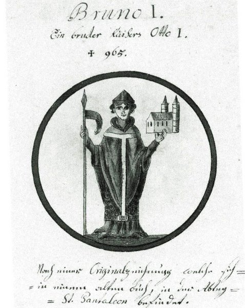 St. Pantaleon sei das „Prestigeprojekt“ Brunos gewesen, stellt der Historiker Karl Ubl in seinem Buch [Köln im Frühmittelalter] fest. Der mächtige Erzbischof, Sohn von König Heinrich I. und Bruder von Kaiser Otto I., gründete auch die Kölner Klöster St. Andreas und Groß St. Martin, doch wollte er in St. Pantaleon begraben werden: