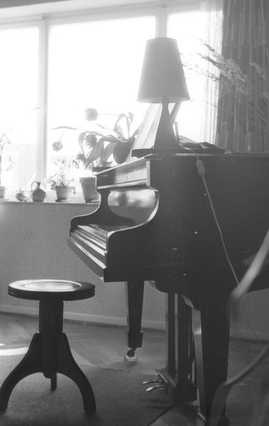 Flügel mit Klavierdrehhocker im Arbeitszimmer Luxemburger Straße 197. Köln 1955