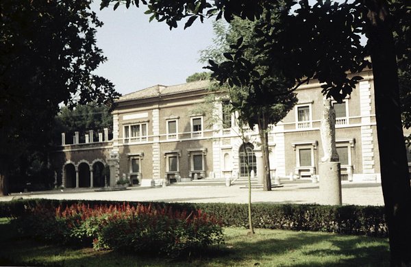 Die „Atelierstraße“ der Villa Massimo mit Studio 10 vorne links. Rom 1963