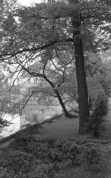 Das Weißhaus-Schloss von der Luxemburger Straße aus gesehen. Köln, Herbst 1956