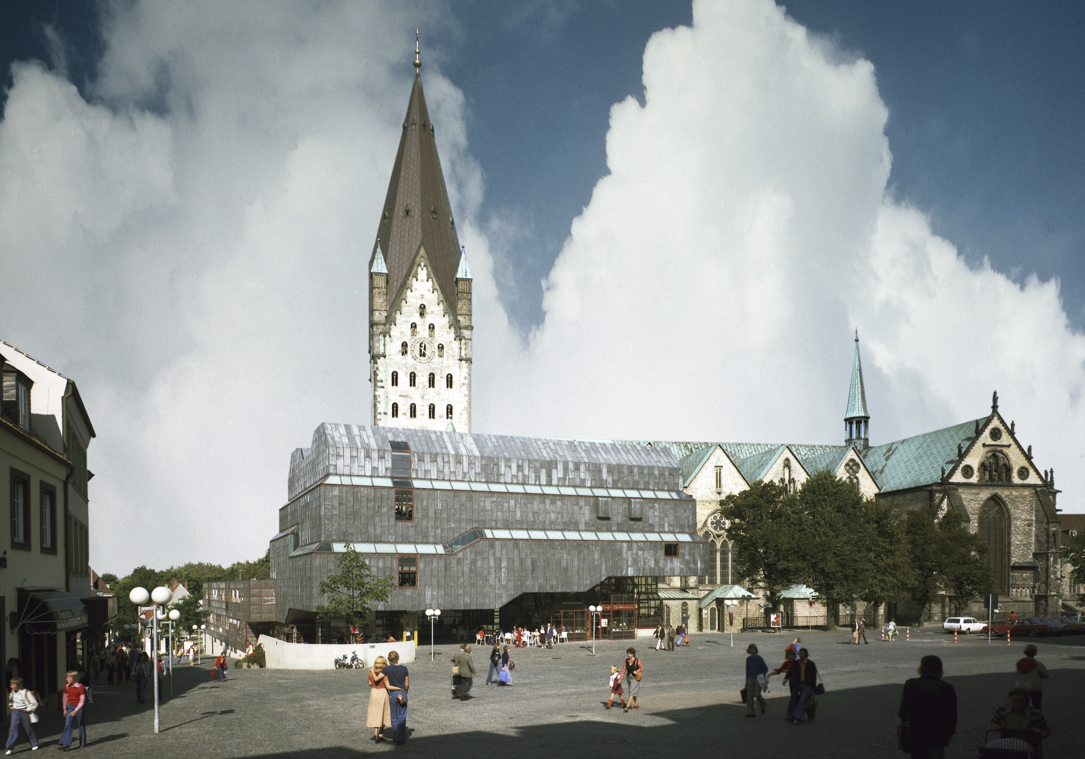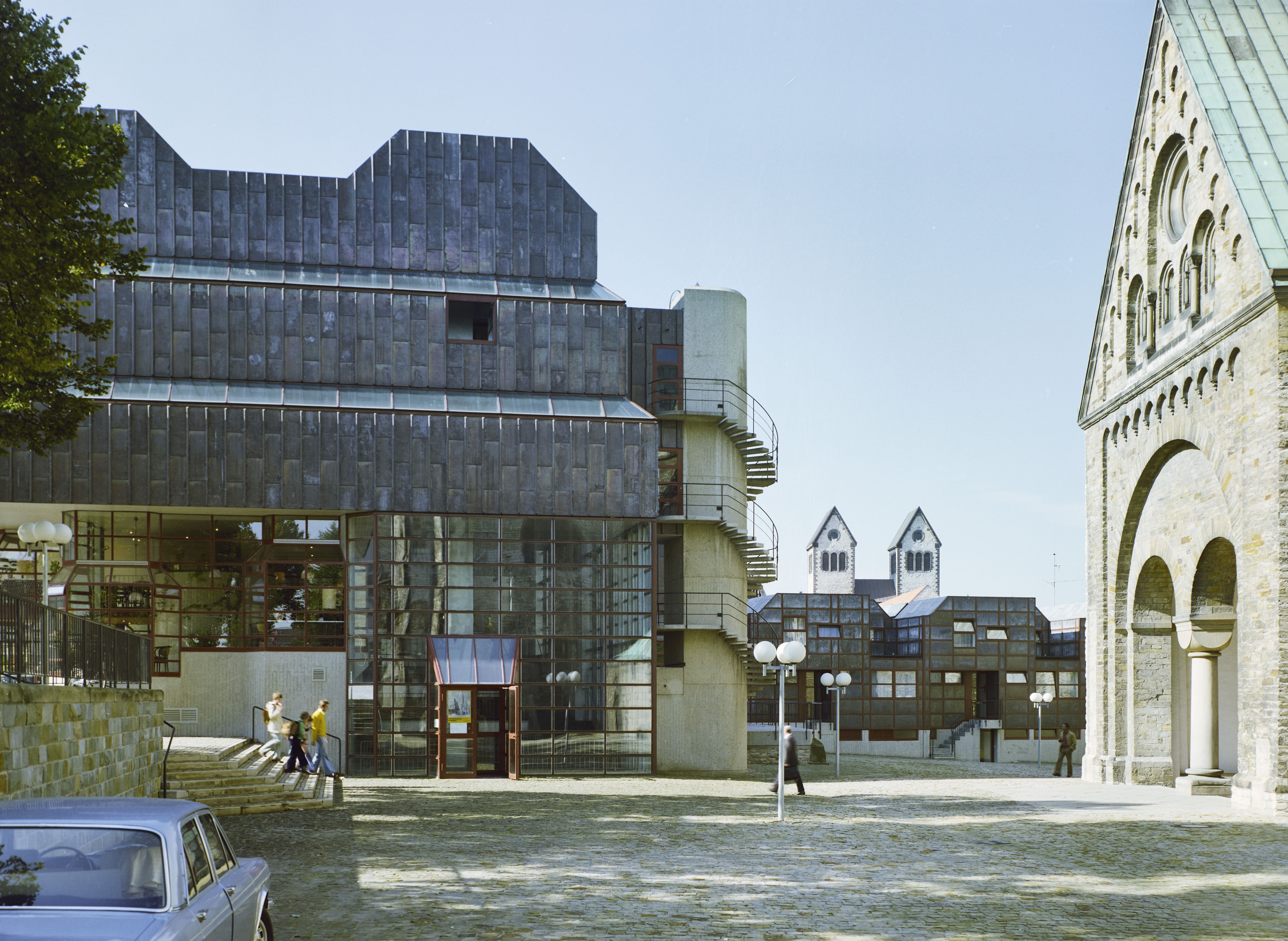 Die Konstruktion scheint in einigen Fotografien der von der Ropps stellenweise mit dem Dom zu verwachsen und wirkt wie ein moderner Anbau. Die Aufnahmen des Außenbereichs treten den damals wie heute zu hörenden Vorwürfen entgegen, der Neubau verstelle den Blick auf den Dom und würdige damit die Bedeutung des alten Bauwerks herab. Wie bei den Burgenbauten sind in Böhms Entwurf Altes und Neues visuell grundsätzlich differenziert. Gerade durch die beinahe abweisend wirkende – für Böhm durchaus untypische – Geschlossenheit der Fassade tritt der Bau nicht in Konkurrenz zum benachbarten Sakralbau. Nördlich umschließt der Museumsbau den Dom in einer Abfolge niedriger Anbauten. Der so erzeugte Innenhof weist einen Binnenraum zwischen den beiden Architekturen aus, der auf ganz eigene Art und Weise die urbane Kommunikation bereichert.