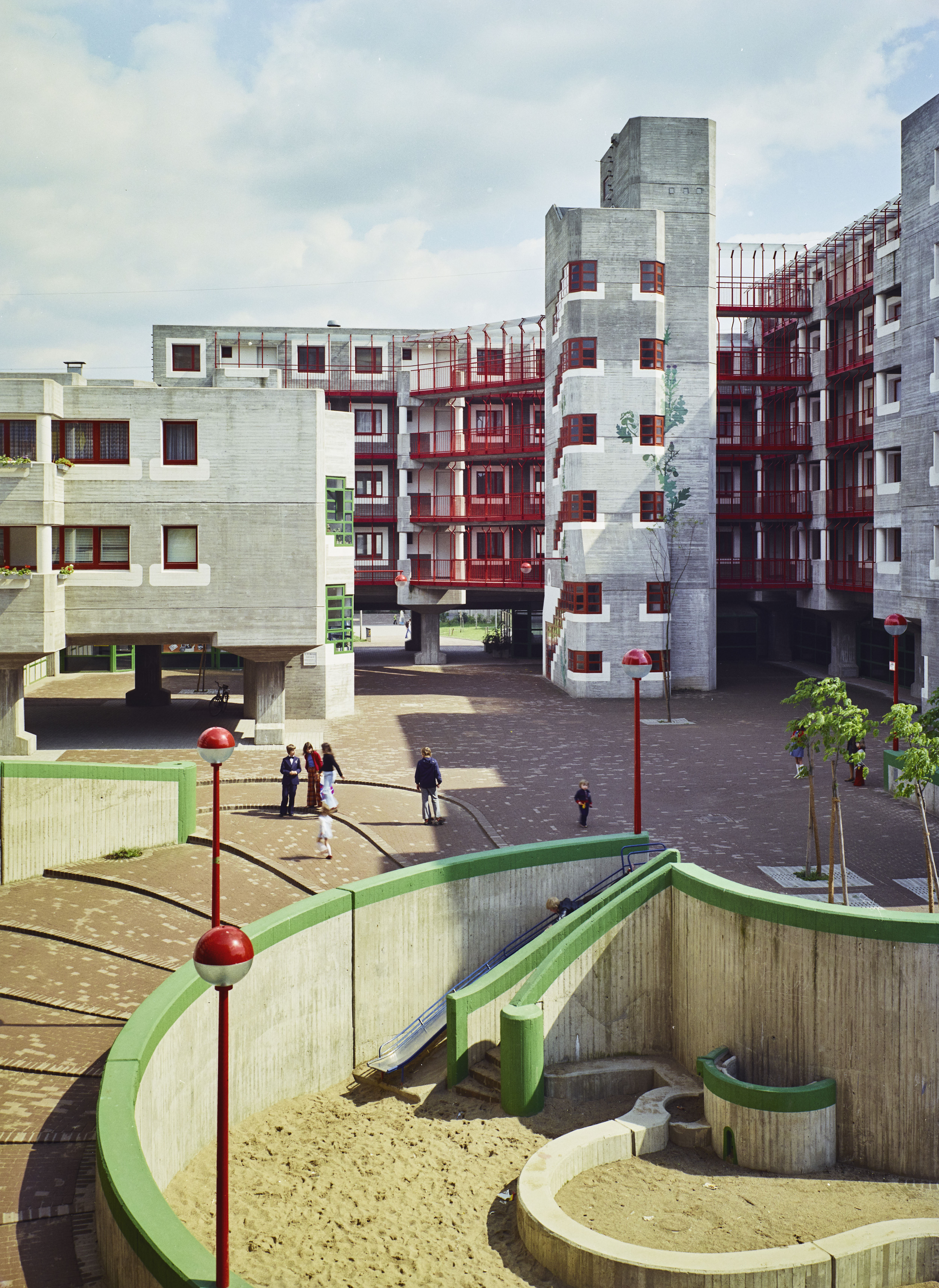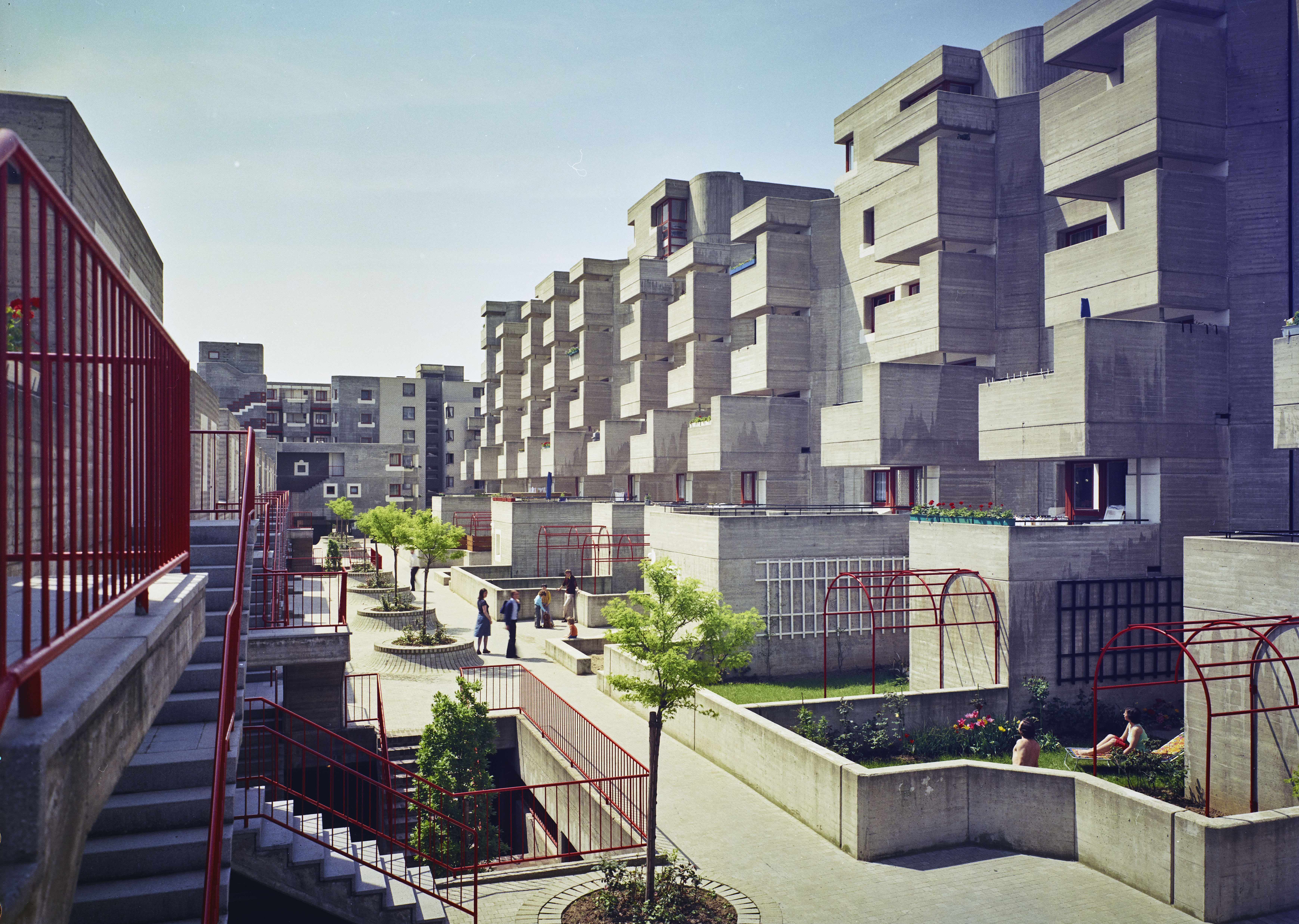 Filigrane Stahlrohrstrukturen in knalligem Rot lockern die kühle Sichtbetonarchitektur auf. Glatte, abweisende Fassaden gibt es nicht. Überall stechen Außentreppen, Balkone, kleine, von niedrigen Betonbrüstungen eingefasste Grünflächen und mit den Betonbauten spielerisch verwobene Aufenthaltsbereiche zwischen den Häusern heraus und erklären Zwischenräume zu belebten und benutzbaren Begegnungszonen. Die Treppenhäuser und Wohnungen im Inneren sind mit demselben offenen Geist gestaltet. Böhm schuf mit der Siedlung Seeberg-Nord eine Struktur, deren menschenfreundliche Grundhaltung man sich in vielen ähnlichen Siedlungsbauten wünschen würde.
