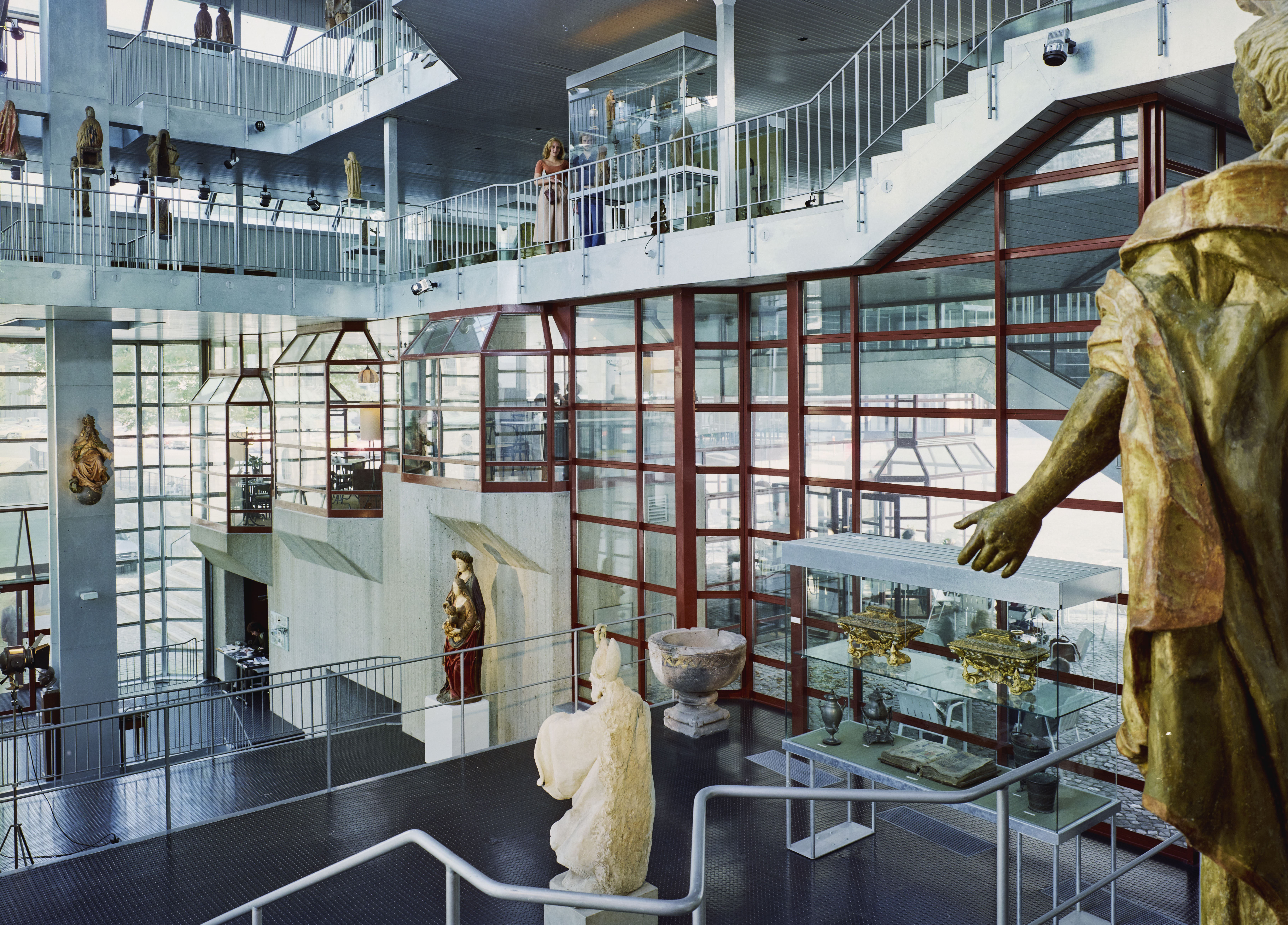 Das Innere des Museums ist als umhüllter Stadtraum aufgefasst. Vom gläsernen Haupteingang gegenüber dem Kirchturm wird das Museum in einer Spiralbewegung über zahlreiche Treppenläufe und Ebenen erschlossen, die das Innere des Gebäudes als großen Freiraum charakterisieren. Filigrane Stahlgeländer, verglaste Innenwände und Erker mit rot gefassten Laibungen, Aufzüge und begehbare Plattformen erheben den Bau in die Sphäre visuell sowie bewegungsdynamisch hochmoderner Museumskonzeptionen. Die kostbaren sakralen Skulpturen und Kunstschätze erscheinen wie in einem Schrein aufbewahrt, doch gerade diese markante gläserne Innenraumsituation und die Dynamik der Bewegungsrichtung wurden nur wenige Jahre später infolge einer konservatorisch unumgänglichen Neukonzeption des Museums zerstört. So sind die Fotografien der von der Ropps nicht nur interpretierende Bilder, sondern auch bedeutende Zeitdokumente des Schaffens und der Intentionen des Architekten.