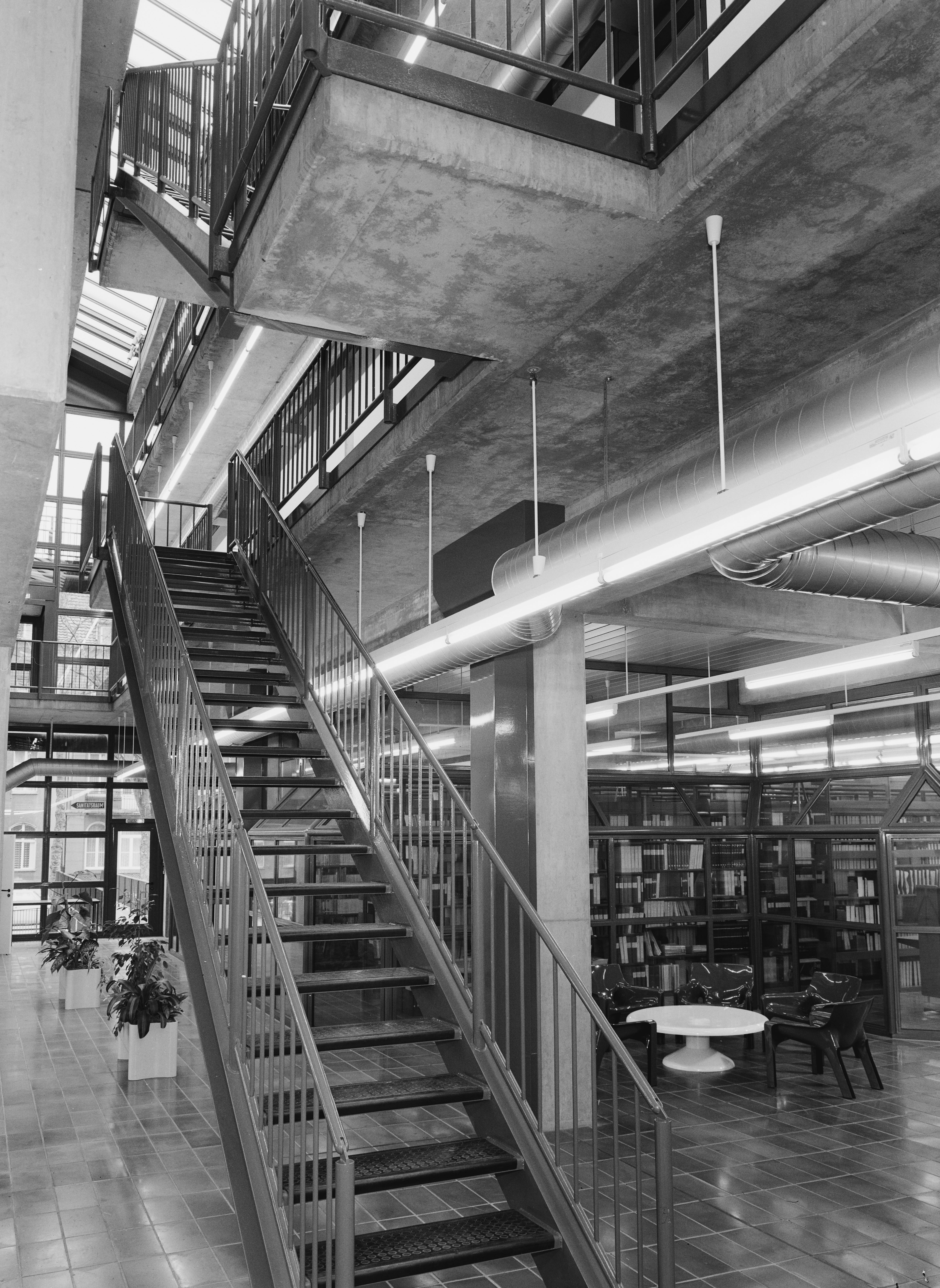 Inge und Arved von der Ropp, Statistisches Landesamt NRW: Treppenaufgang mit Bibliothek, nach 1976