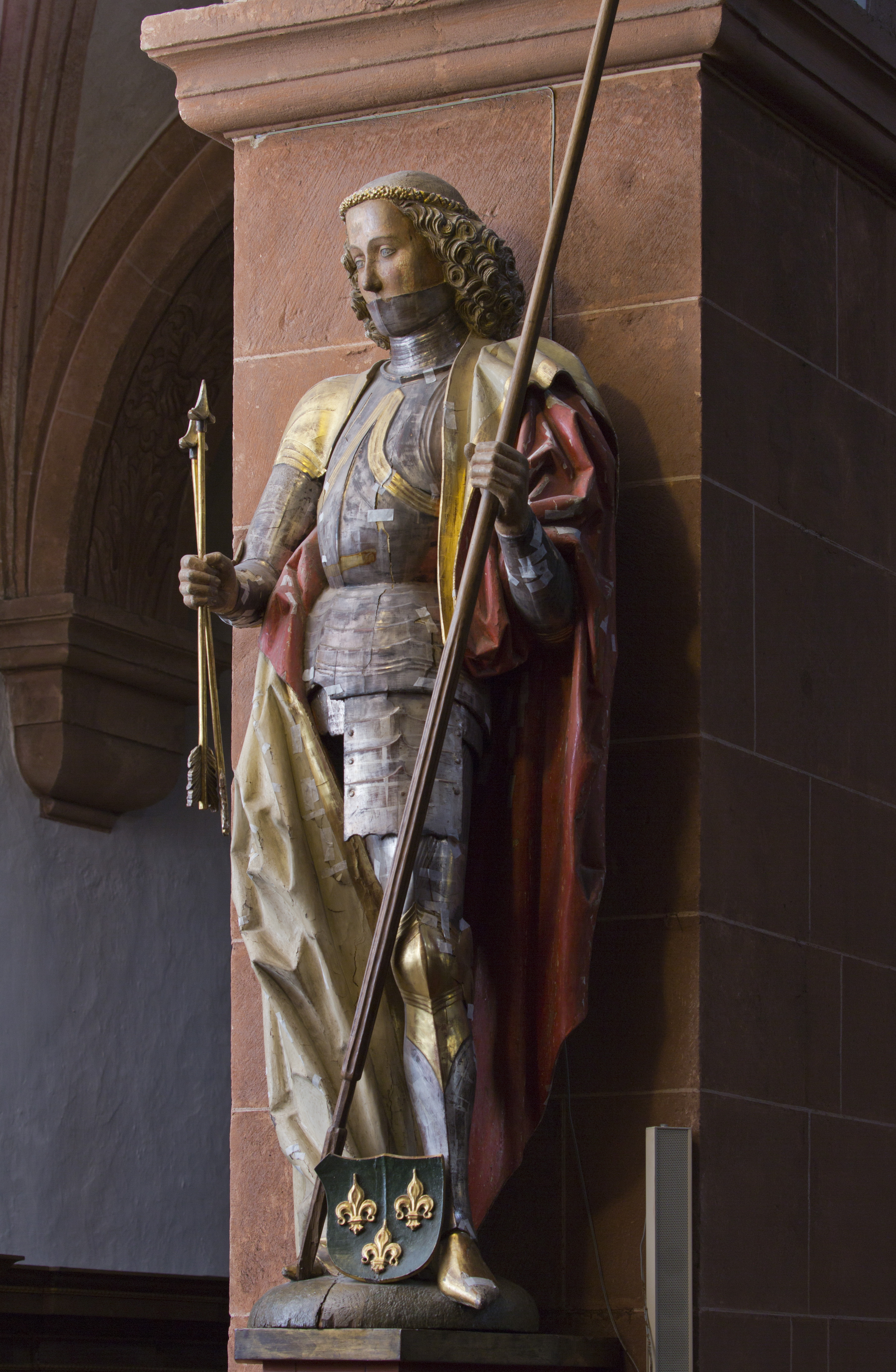 Spätgotische Figur des heiligen Potentinus als Ritter.